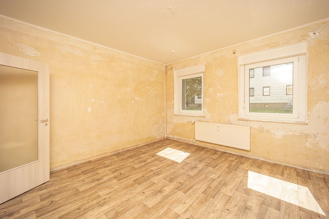 In der Bergmannsallee 11 kann im Erdgeschoss diese gemütliche 3-Raumwohnung angemietet werden. Die Decken, die Küche und der Flur sind bereits mit weißer Raufasertapete tapeziert. Die Wände im Wohn- und in den Schlafbereichen können nach den eigenen Vorstellungen tapeziert werden. Das Bad ist mit einer Wanne und einem Fenster ausgestattet. Die Küche ist separat und verfügt über ein Fenster. Hier wohnen Sie ruhig, sind schnell am Bahnhof und mit dem Bus auch schnell im 3-E-Center. Der Lidl sowie das Kaufland sind fußläufig erreichbar. Eine Kita und Schulen befinden sich ebenfalls in der Nähe. Bei Interesse vereinbaren Sie mit uns einen Termin. Wir freuen uns auf Sie.