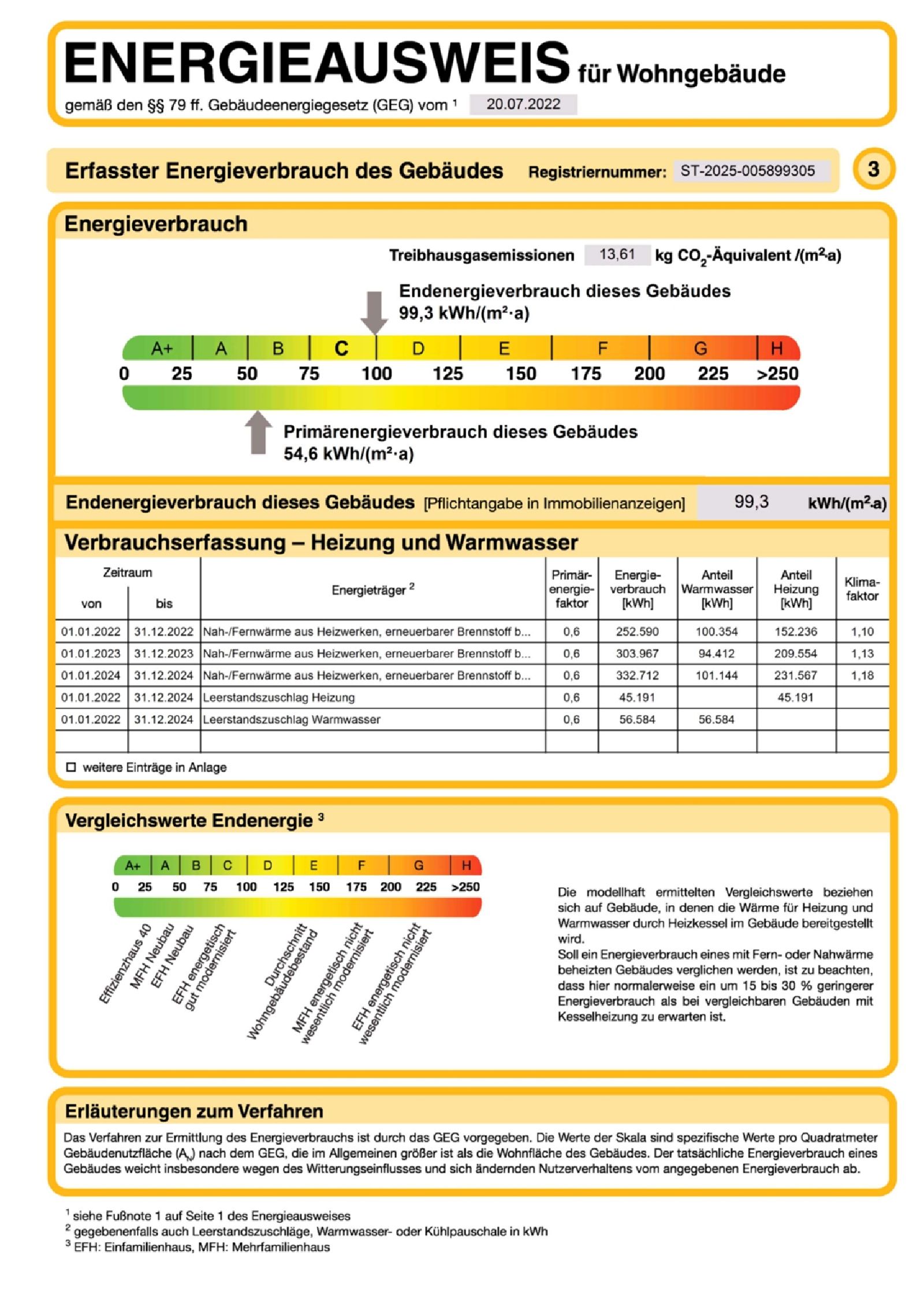 | Energiekennwert | 99,3 kWh/(m²a) Energieverbrauchskennwert |