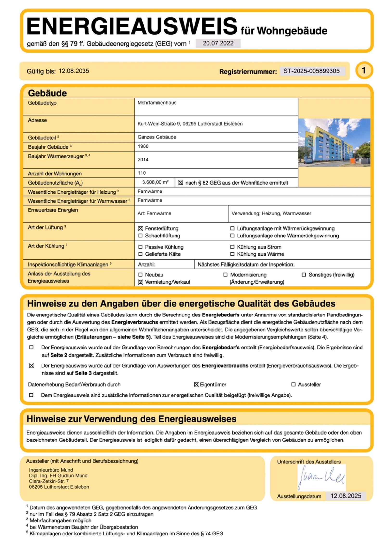 | Energieausweistyp | Verbrauchsausweis |