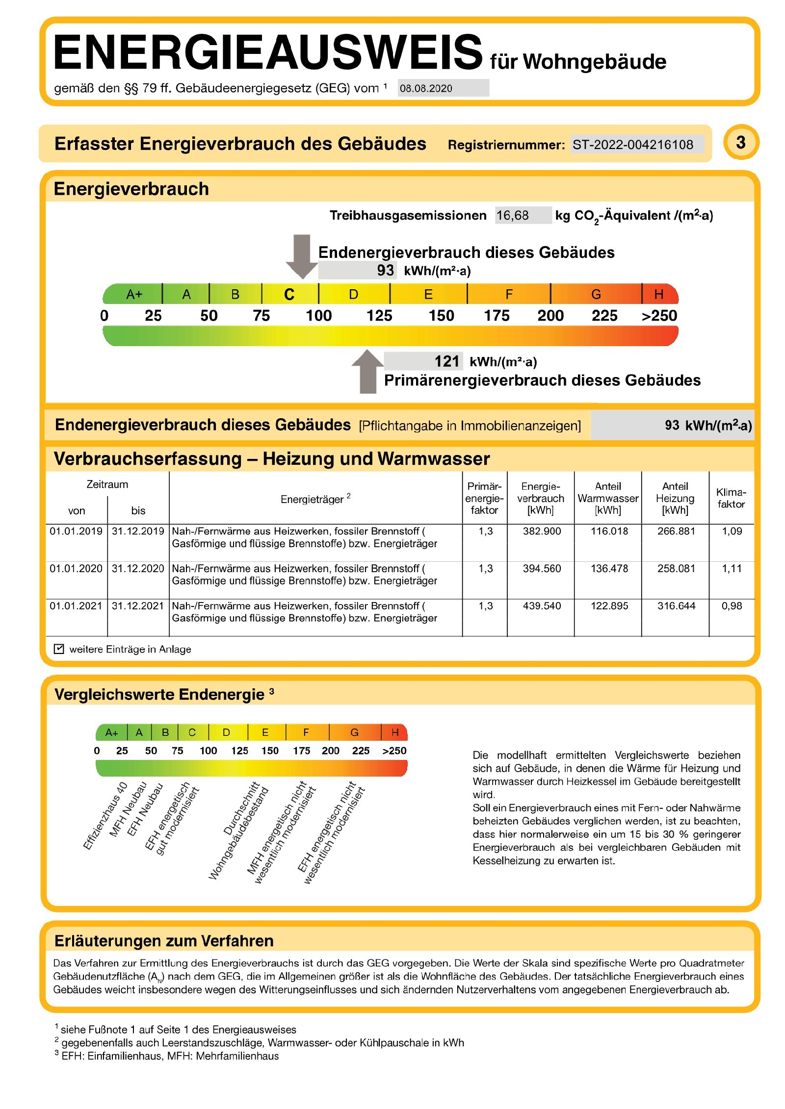| Energiekennwert | 93 kWh/(m²a) Energieverbrauchskennwert |