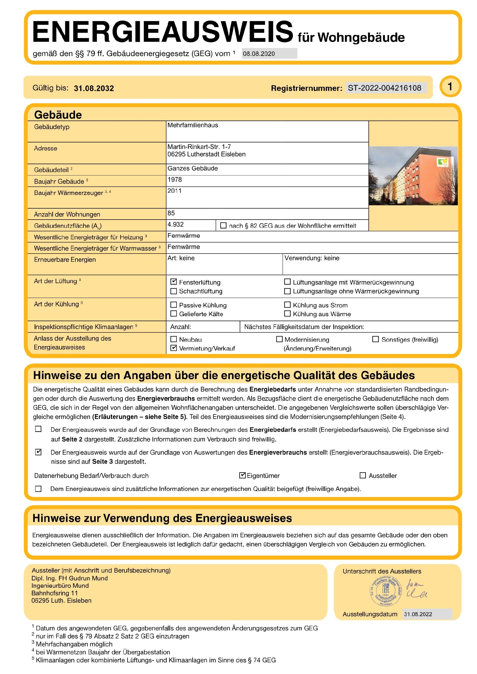 | Energieausweistyp | Verbrauchsausweis |