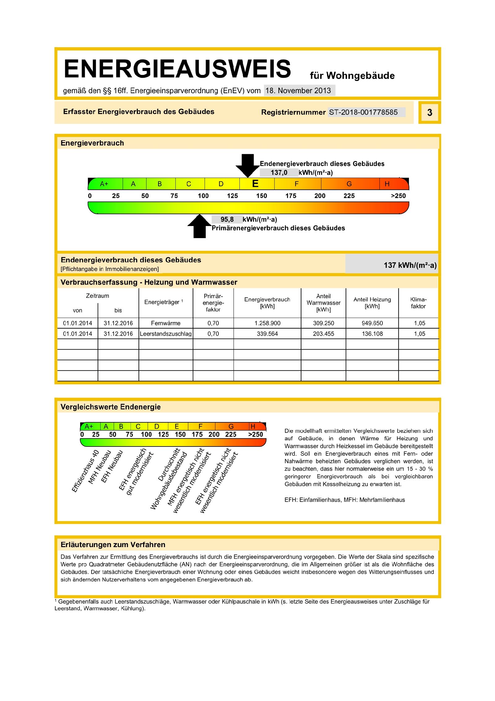 | Energiekennwert | 137 kWh/(m²a) Energieverbrauchskennwert |