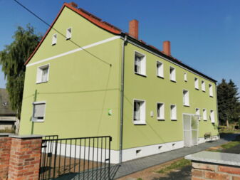 Bereits im letzten Jahr haben wir in der Hübitzer Straße 38a in Volkstedt die Fassade gedämmt und mit einem neuen Anstrich versehen. In diesem Jahr wurde durch den Abwasserzweckverband die Regenentwässerung erneuert und in diesem Zuge haben wir auch die Wege neu gestaltet. Die Arbeiten an diesem Objekt sind nun abgeschlossen und unsere Mieter können sich in dem Haus wieder richtig Zuhause fühlen.