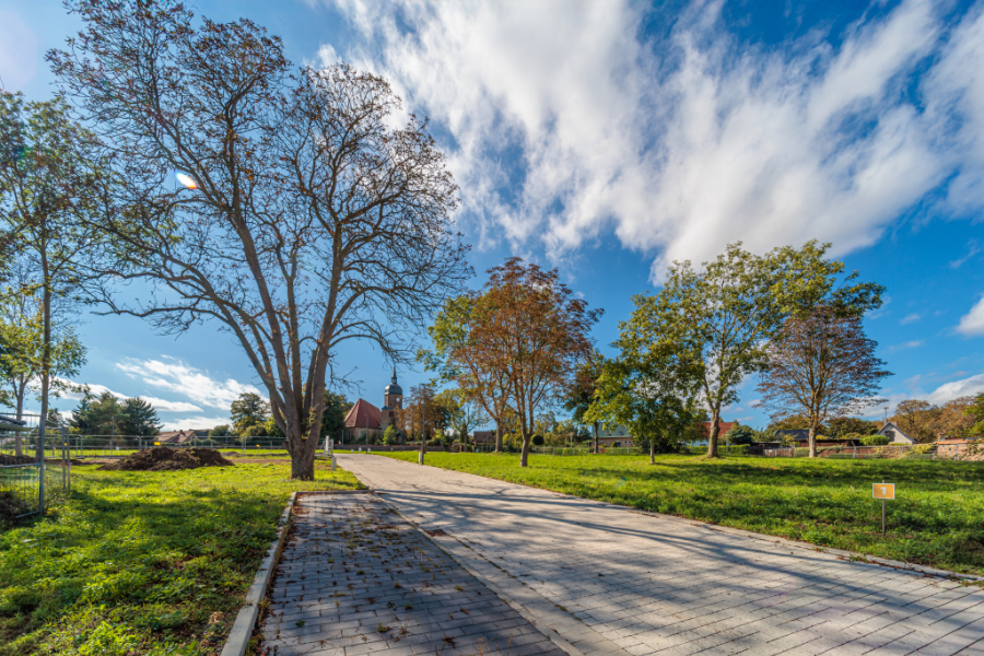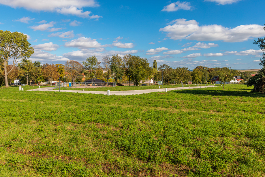 In dörflich-idyllischer Lage inmitten von Helfta sind 22 Baugrundstücke in unterschiedlicher Größe entstanden. Ursprünglich wurde das Grundstück als Gartenanlage genutzt und war teilweise mit Garagen bebaut. Diese wurden im Zuge der Vorbereitung der Baumaßnahmen zurückgebaut, um Platz für einen schönen Eigenheimstandort zu schaffen. Sämtliche benötigte Anschlüsse wurden im Zuge der Baumaßnahme direkt auf alle Grundstücke verlegt, so dass für die Verlegung bis in Ihr neues Zuhause nur noch sehr geringe Anschlusskosten anfallen werden. Alle Grundstücke sind über eine neu gebaute Straße, dem Joachim-Herrmann-Ring erreichbar.