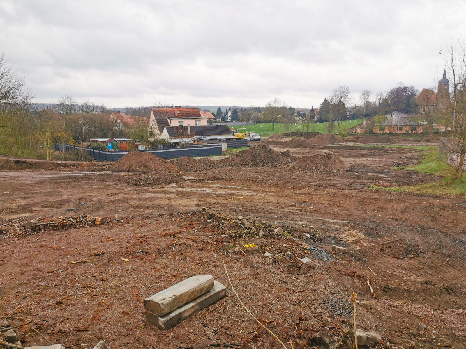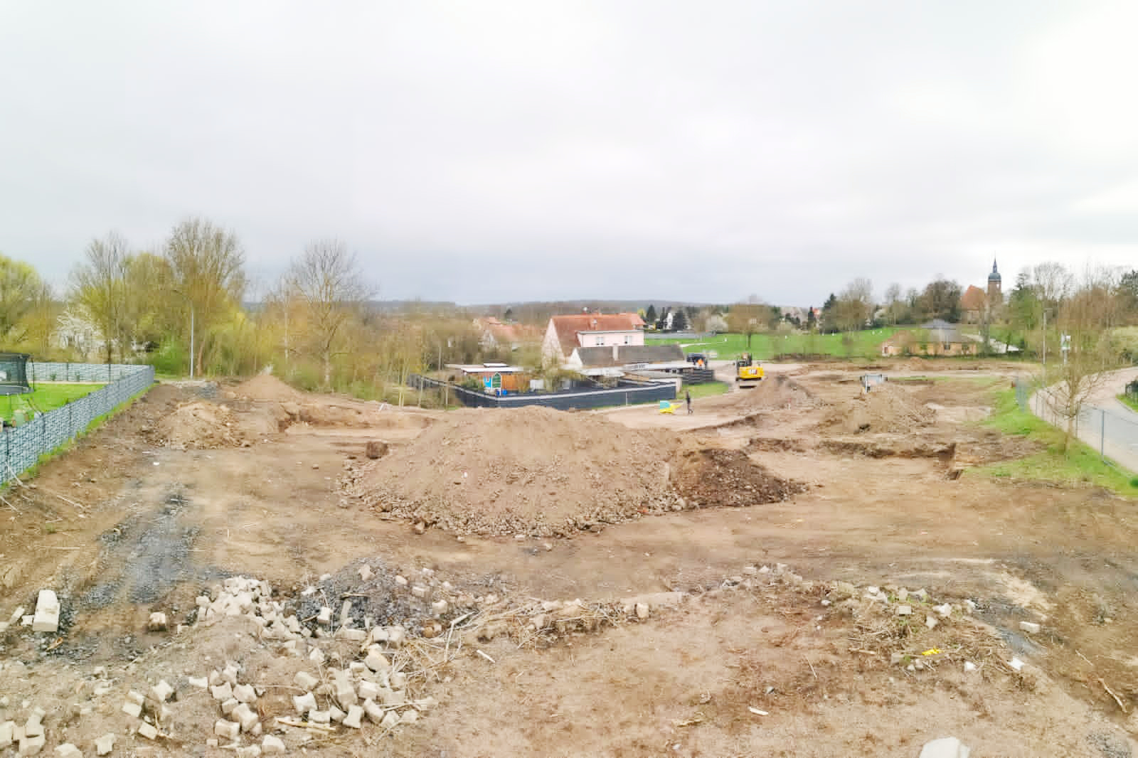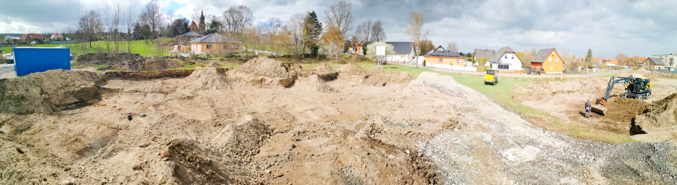 Die Arbeiten gehen weiter vorran. Die Archäologen haben das Gebiet untersucht, seit dem 13.04.2026 können die Arbeiten weitergeführt werden. Derzeit wird der Baugrund für den Bau der Grundplatten vorbereitet.