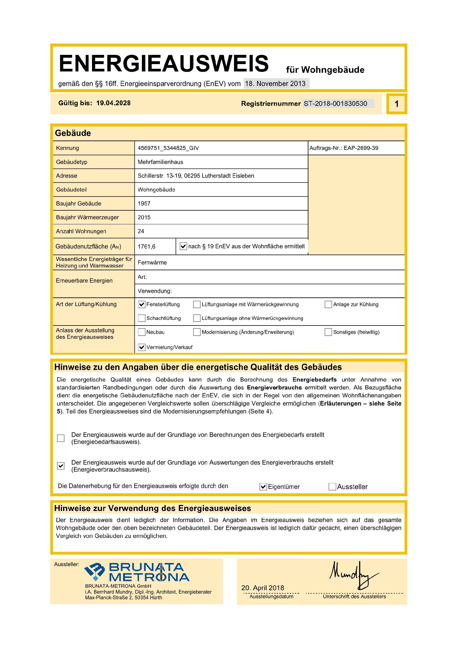| Energieausweistyp | Verbrauchsausweis |