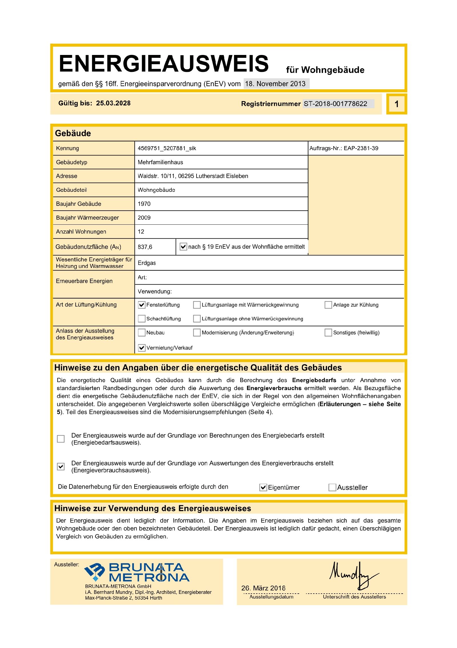 | Energieausweistyp | Verbrauchsausweis |