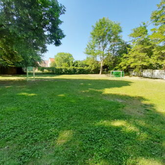 In der Wilhelm-Piecksiedlung hat die Wobau auf einer großen Grünfläche hinter der Von-Veltheim-Straße einen kleinen Platz mit Toren ausgestattet. Hier können unsere kleinen Mieter mit ihren Freunden nach Herzenslust kicken und toben.