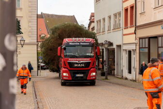 Das Jahr neigt sich langsam dem Ende zu und der Eisleber Markt wird festlich dekoriert. Da darf ein schöner Weihnachtsbaum in mitten des Marktplatzes natürlich nicht fehlen. In diesem Jahr durften wir dazu beitragen, dass es auf dem Marktplatz weihnachtlich wird. Ein schön gewachsener, großer Baum stand im Vorgarten in unserer Von-Veltheim-Straße 2. Die Tanne wurde heute durch die Lutherstadt Eisleben gefällt und zum Marktplatz transportiert. Hier wurde er aufgestellt und muss nun noch …