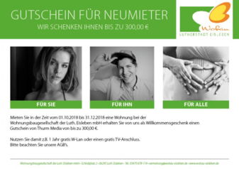 Die Nachbarwohnung steht leer und die Frage kommt auf, wer hier wohl als nächstes einziehen wird und ob der- oder diejenige auch in die Hausgemeinschaft passt.Mit unserer Aktion MIETER WERBEN MIETER können Sie sich Ihren Nachbarn ganz einfach selbst aussuchen und als Dankeschön erhalten Sie von uns ein attraktive Prämie in Form eines Gutscheins Ihrer Wahl. Wie das funktioniert? Ganz einfach! Sie kennen jemanden der eine Wohnung sucht und denken, dass die Person gut in die Hausgemeinschaft passt? …