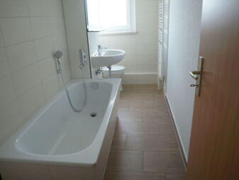 Im Dezember/Januar steht eine komplett sanierte 2- Raumwohnung im Erdgeschoss zur Vermietung. Sie erhalten die Wohnung in einem komplett modernen und neu renovierten Zustand. Das Bad ist neu, alle Türen sind erneuert, die Wände sind tapeziert, alle Fliesen sowie der Fußbodenbelag wurden erneuert. Damit Sie diese Wohnung beziehen können, brauchen Sie einen Wohnberechtigungsschein. Gern informieren wir Sie hierzu. Interessiert? Dann rufen Sie uns an. Telefon: 03475 678-114 Ihre Wobau